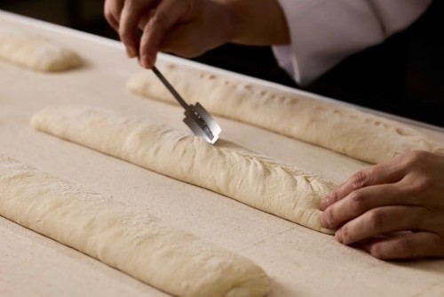 冷凍生地を使わず、小麦粉や天然酵母など素材本来の風味を最大限に引き出す手作り製法。生地の状態に合わせて熟練職人が微調整します。